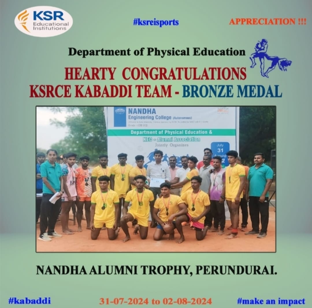 I am thankful to our college for creating a friendly and supportive learning environment. The faculty members are highly knowledgeable, encouraging, and always motivated us to perform better, which helped us gain valuable experience. The frequent placement drives by reputed companies boosted our confidence and provided ample opportunities to secure job offers. The dedicated training for personality development enhanced our communication skills and improved our confidence level. The journey with KSRCE was truly memorable and continues to remind me of those golden moments.
