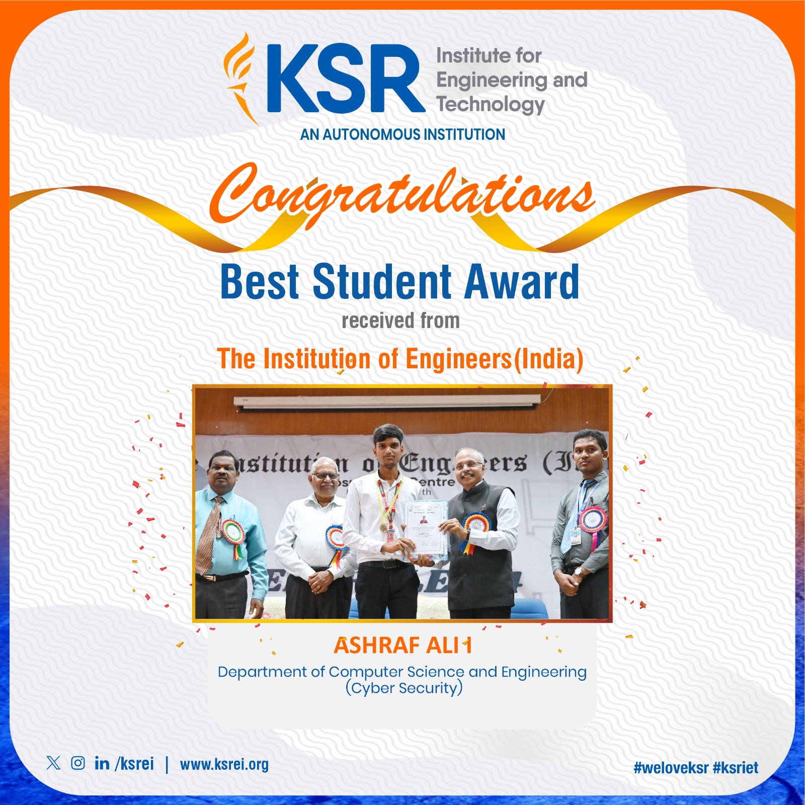 Research work is a important part of every department at K.S.R. College of Engineering. Here’s the roundup of the research work – publications, patents, Grants and programs organized by the department.