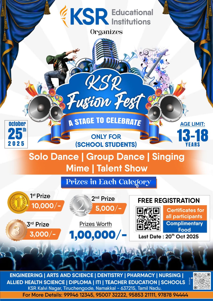 KSR Educational Institutions proudly presents Fusion Fest 2025 – the ultimate platform for school students to shine!