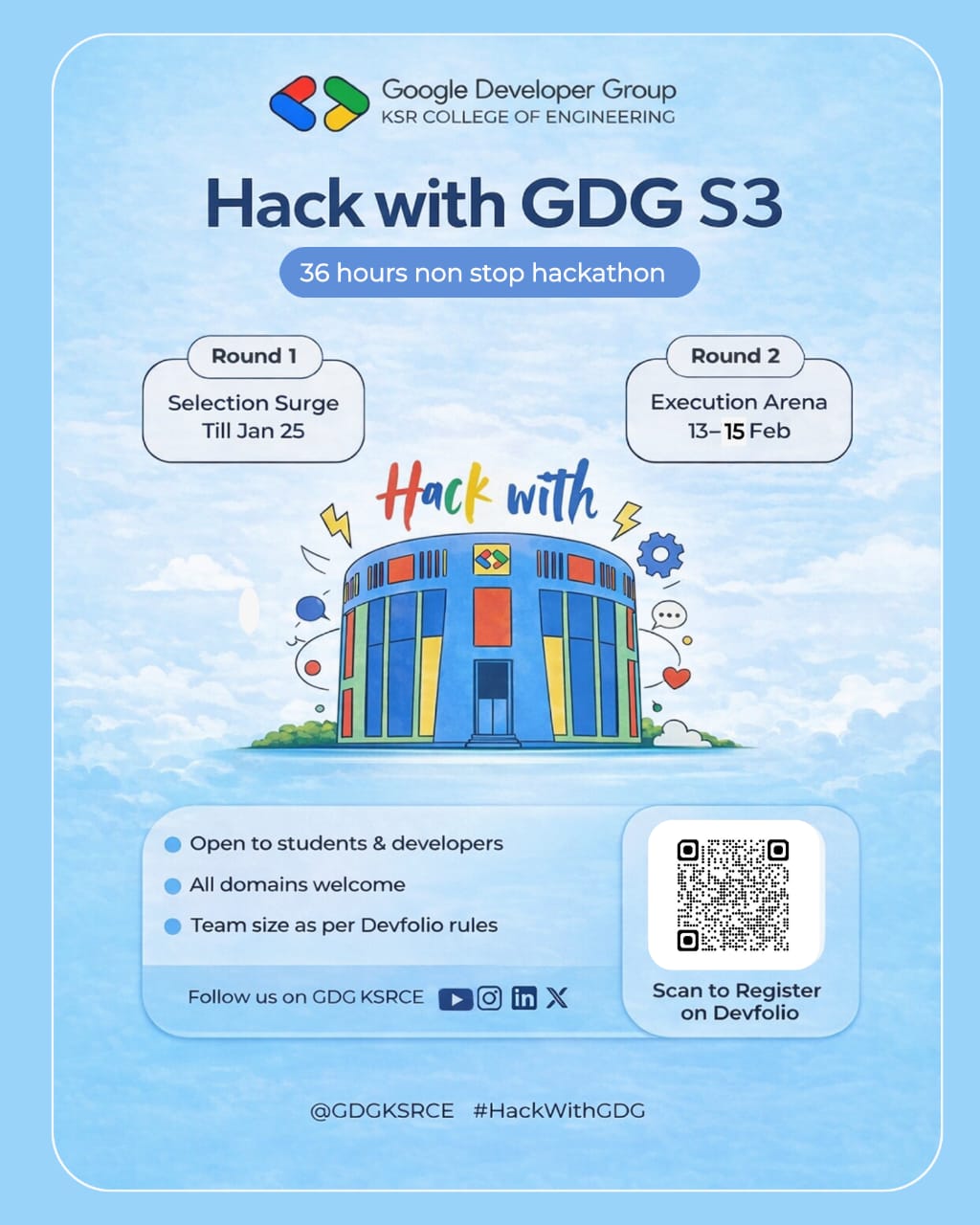 Greetings from Hack with GDG – Season 3, organized by GDG KSRCE